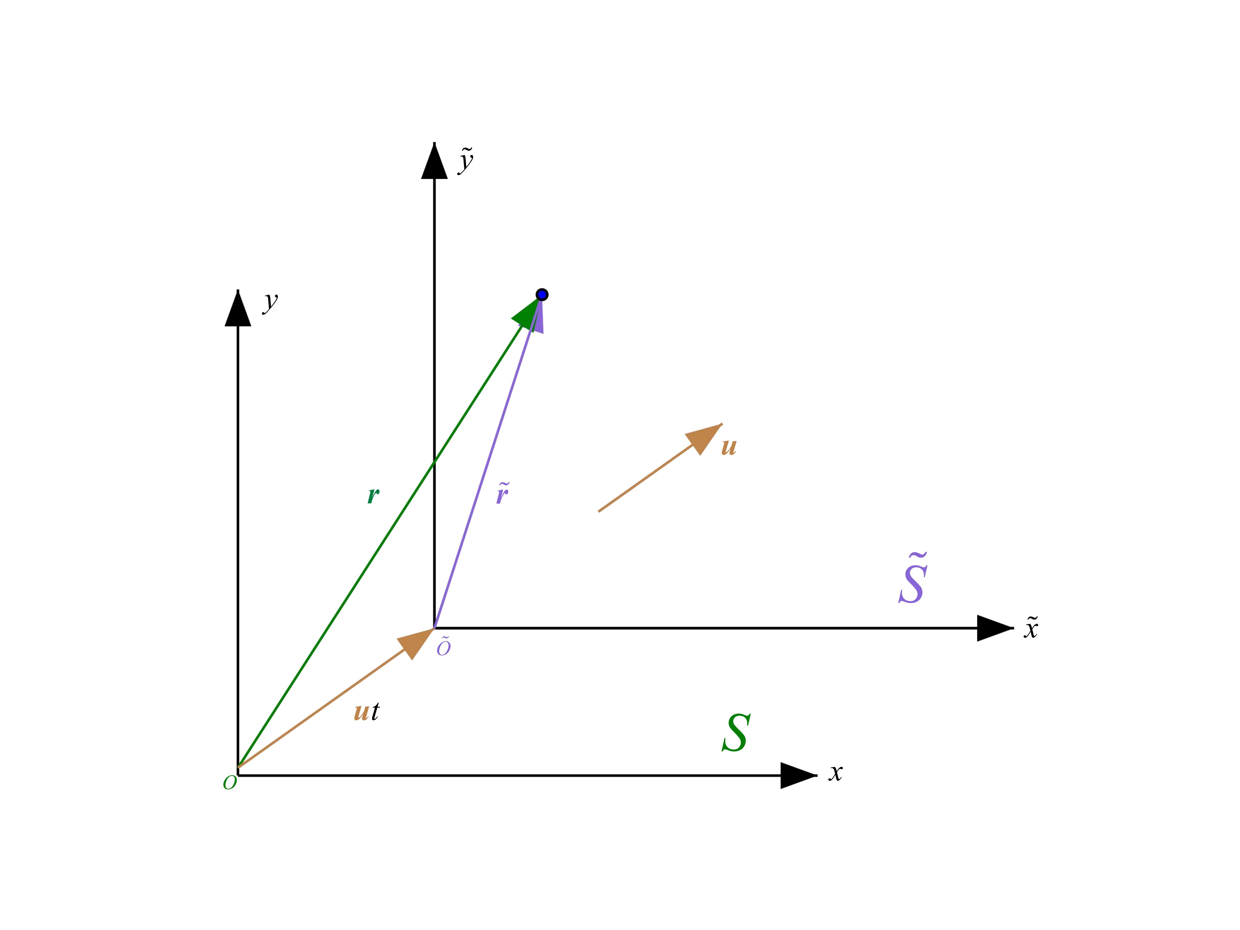 假设两个惯性参考系之间的速度为,而自由质点在其中一个惯性系中以速度运动,那么根据伽利略变换可知,该质点在另一个参考系中的速度为