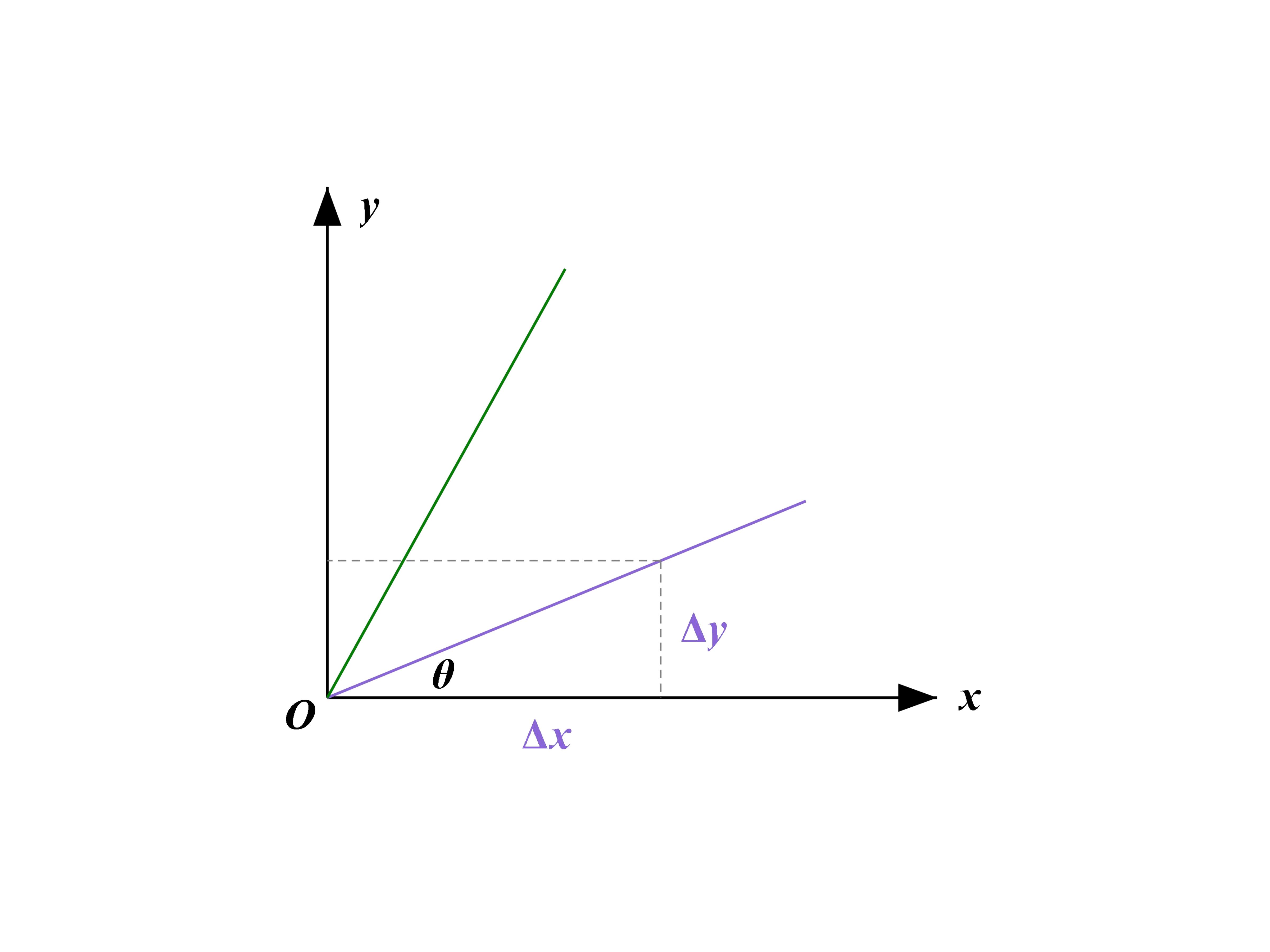 以形象直观的图形来说,要反映图中倾斜直线的倾斜程度,显然是图中的角度(0到90度范围内)越大,直线就越陡峭。而角度的大小可以由其正切值来反映:,也称为直线的斜率。