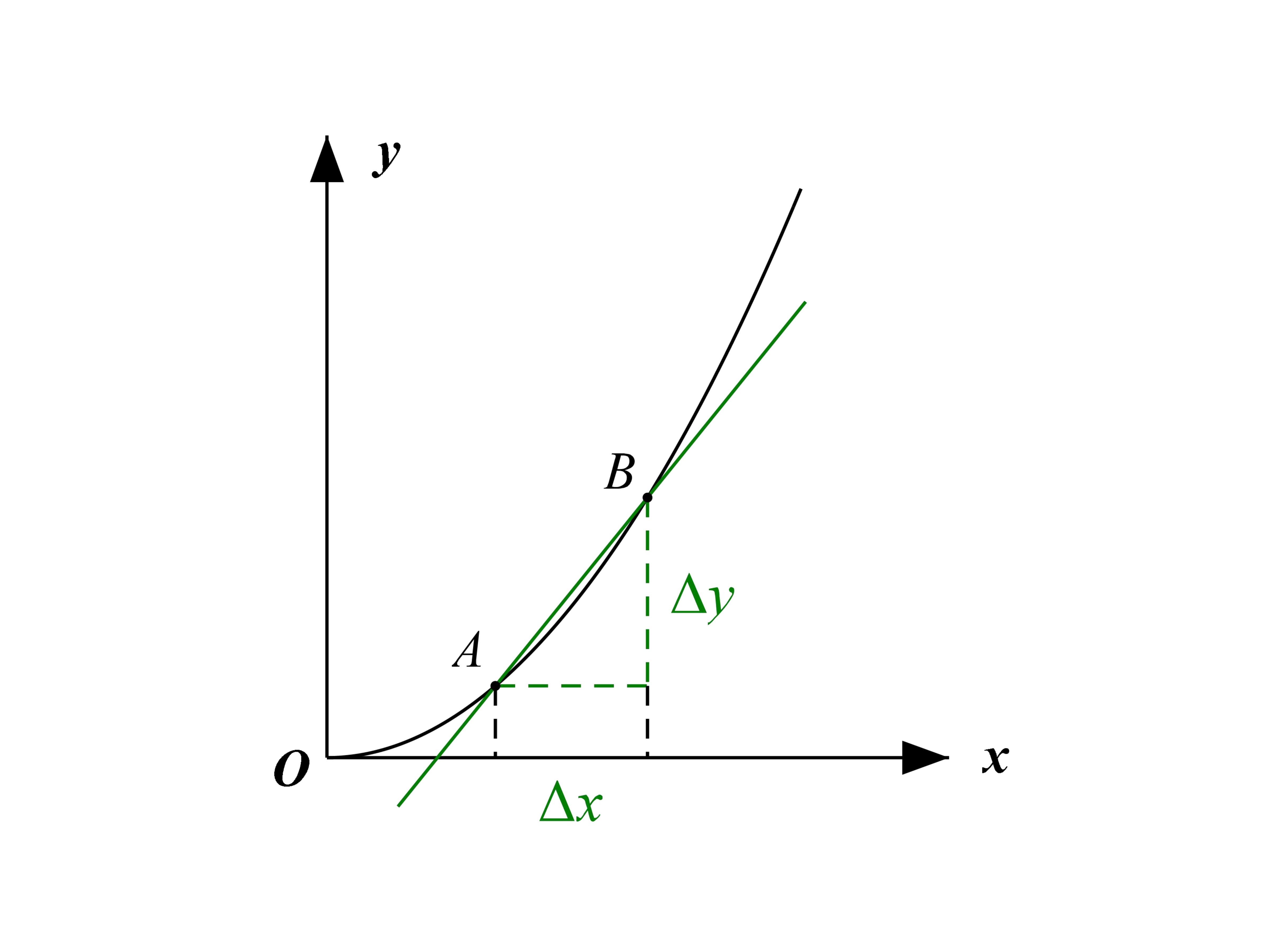 从直线斜率的计算可以看到,要出现和,需要在直线上取两个点才行。所以同样的做法在曲线上来一遍即可,由此得到的直线称为割线。