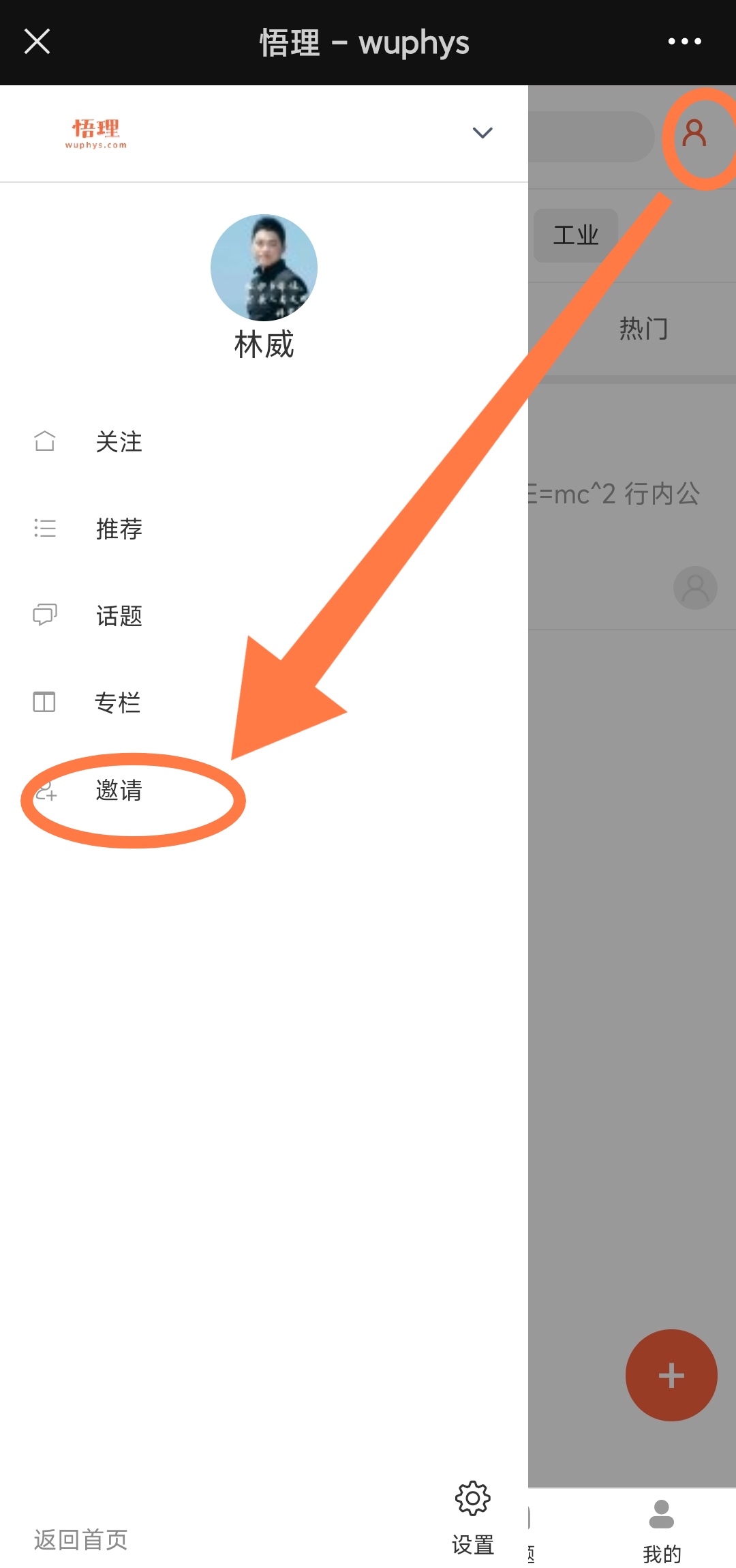 手机端,需要点击右上角的人头按钮,然后在左侧弹出的列表中,点击“邀请”。剩下的操作一样。