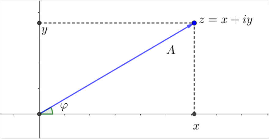 这样,任何一个复数 都可以在复平面上找到一个点一一对应,如下图所示。